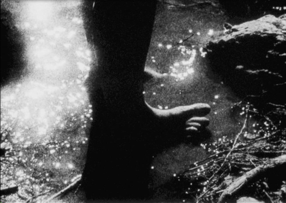 Construire un film-feu. Une ode en noir & blanc pour l’arrivée de l’été. Rebenty est né d’une expérience collective, au bord d’une rivière de l’Aude, en prélevant ce que le lieu peut offrir : des variations de lumière, du bois, des pierres et de l’eau, des feuilles qui laissent leur traces sur le support du film.